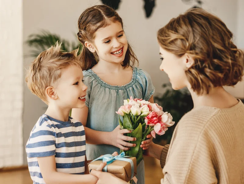 Дети поздравляют маму.